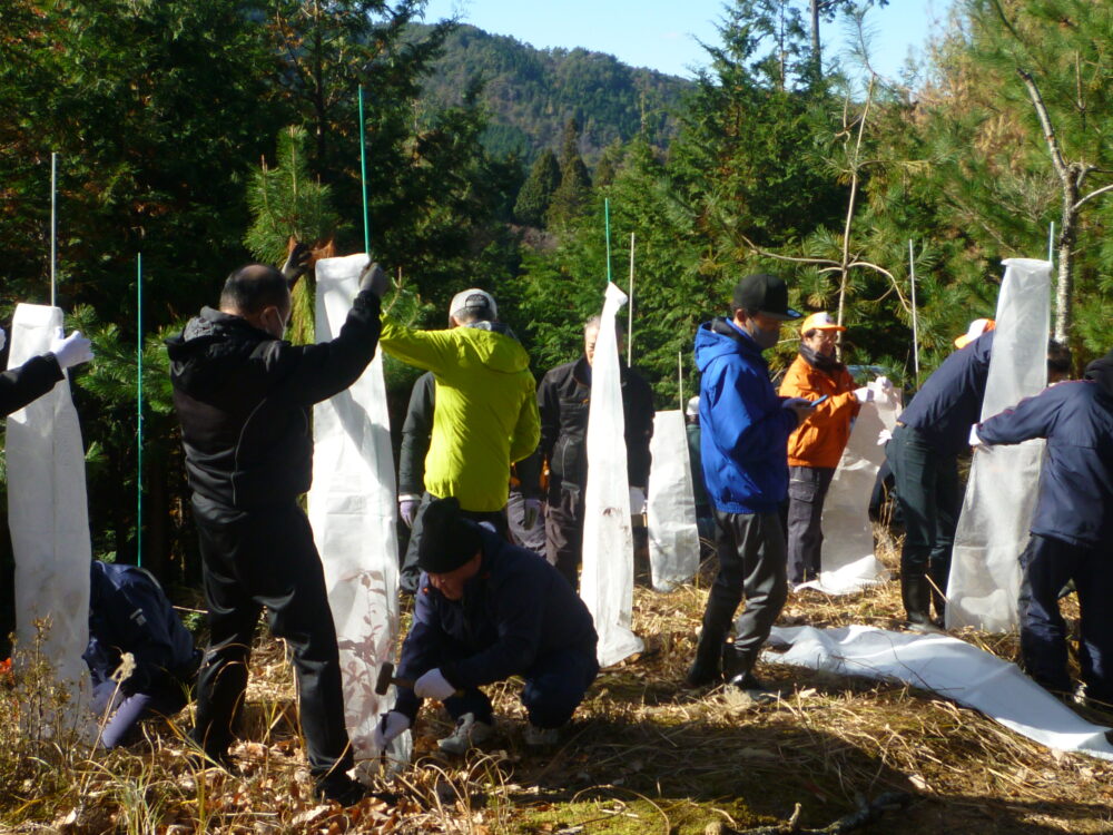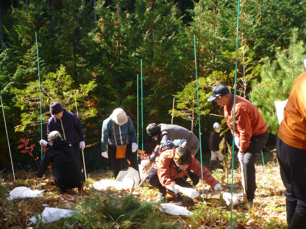 12月6日、滋賀県環境保全協会の森で当協会主催による森林整備ボランティア活動が実施されました。活動の内容は、昨年の続きとして、コナラの苗木100本を植樹していただきました。これで予定されていた合計220本のコナラの植樹が完了。今後は年一回の育樹活動を通して様々な環境に貢献できる広葉樹としてのコナラの森づくりを目指すこととなります。